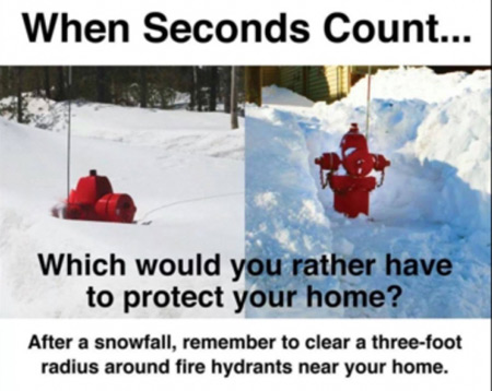 We’d like to remind everyone as the winter weather approaches that if you have a fire hydrant out front or near your home to keep it clear!